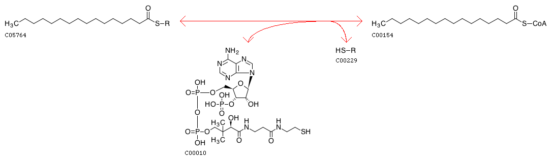 R10700 Hexadecanoyl-[acp] + CoA <=> Palmitoyl-CoA + Acyl-carrier protein