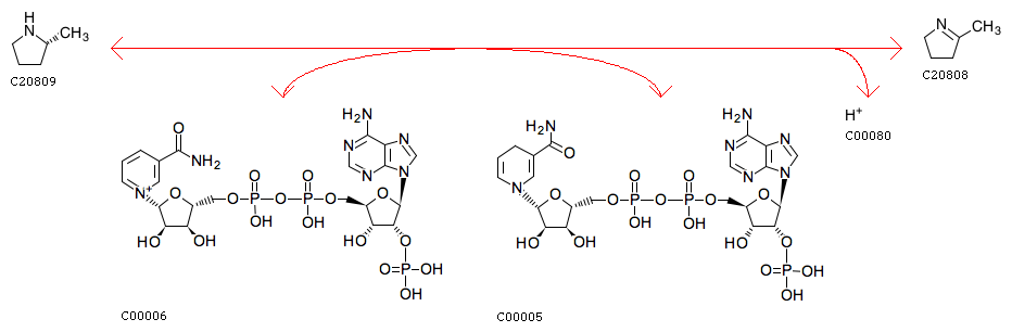 R10730 (R)-2-Methylpyrrolidine + NADP+ <=> 2-Methyl-1-pyrroline + NADPH + H+