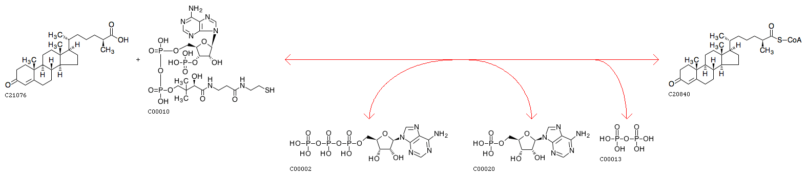 R10770 ATP + Delta4-Dafachronic acid + CoA <=> AMP + Diphosphate + (25S)-3-Oxocholest-4-en-26-oyl-CoA