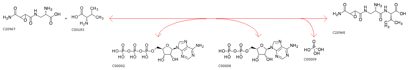 R10941 ATP + N(beta)-Epoxysuccinamoyl-DAP + L-Valine <=> ADP + Orthophosphate + N(beta)-Epoxysuccinamoyl-DAP-Val