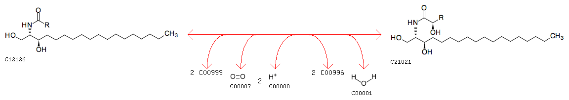 R11003 Dihydroceramide + 2 Ferrocytochrome b5 + Oxygen + 2 H+ <=> (2'R)-2'-Hydroxydihydroceramide + 2 Ferricytochrome b5 + H2O