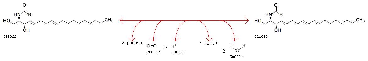 R11006 (4E,8E)-Sphinga-4,8-dienine ceramide + 2 Ferrocytochrome b5 + Oxygen + 2 H+ <=> (4E,8E,10E)-Sphinga-4,8,10-trienine ceramide + 2 Ferricytochrome b5 + 2 H2O