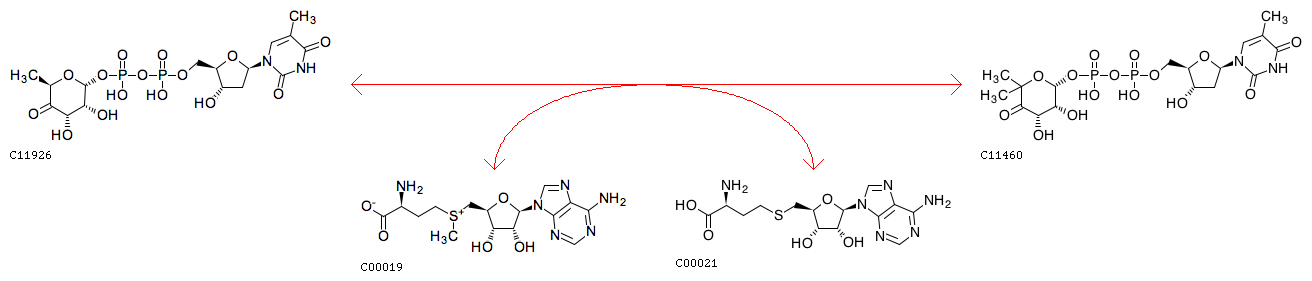 R11020 S-Adenosyl-L-methionine + dTDP-4-oxo-6-deoxy-D-allose <=> S-Adenosyl-L-homocysteine + dTDP-4-oxo-5-C-methyl-L-rhamnose