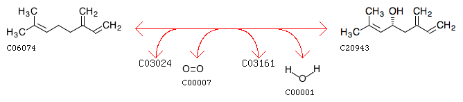 R11055 Myrcene + [Reduced NADPH---hemoprotein reductase] + Oxygen <=> (R)-Ipsdienol + [Oxidized NADPH---hemoprotein reductase] + H2O