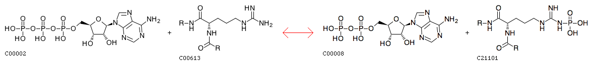 R11090 ATP + Protein-L-arginine <=> ADP + Protein N(omega)-phospho-L-arginine