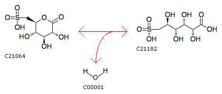 R11242 6-Deoxy-6-sulfo-D-glucono-1,5-lactone + H2O <=> 6-Deoxy-6-sulfo-D-gluconate