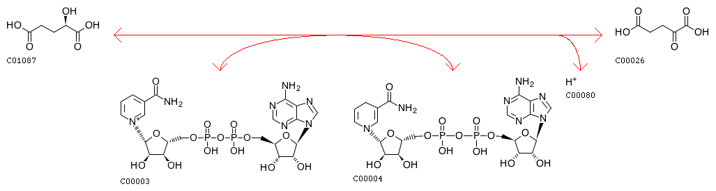R11337 (R)-2-Hydroxyglutarate + NAD+ <=> 2-Oxoglutarate + NADH + H+