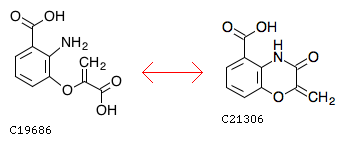 3-(1-Carboxyvinyloxy)anthranilate <=> 3,4-Dihydro-2-methylene-3-oxo-2H-1,4-benzoxazine-5-carboxylate