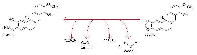 R11405 (S)-Scoulerine + [Reduced NADPH---hemoprotein reductase] + Oxygen <=> (S)-Nandinine + [Oxidized NADPH---hemoprotein reductase] + 2 H2O