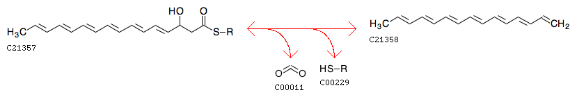 3-Hydroxyhexadeca-4,6,8,10,12,14-hexaenoyl-[acp] <=> 1,3,5,7,9,11,13-Pentadecaheptaene + CO2 + Acyl-carrier protein