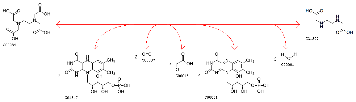 R11456 EDTA + 2 Reduced FMN + 2 Oxygen <=> Ethylenediamine-N,N'-diacetic acid + 2 Glyoxylate + 2 FMN + 2 H2O