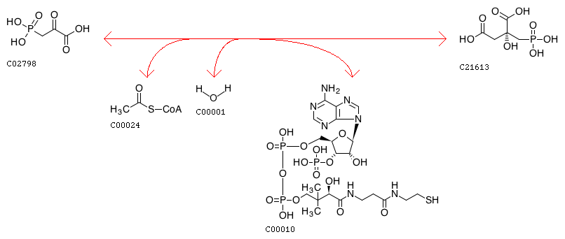 R11708 Acetyl-CoA + H2O + 3-Phosphonopyruvate <=> (R)-2-(Phosphonomethyl)malate + CoA