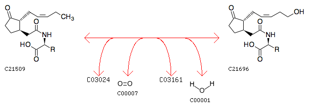 R11806 Jasmonoyl-L-amino acid + [Reduced NADPH---hemoprotein reductase] + Oxygen <=> 12-Hydroxyjasmonoyl-L-amino acid + [Oxidized NADPH---hemoprotein reductase] + H2O