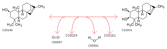 R11978 ent-2alpha-Hydroxyisokaurene + Oxygen + [Reduced NADPH---hemoprotein reductase] <=> ent-2alpha,3alpha-Dihydroxyisokaurene + H2O + [Oxidized NADPH---hemoprotein reductase]