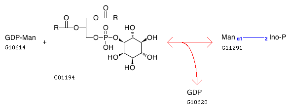 GDP-D-mannose + 1-Phosphatidyl-D-myo-inositol <=> GDP + Phosphatidyl-myo-inositol monomannoside