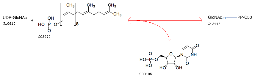 UDP-N-acetyl-D-glucosamine + Decaprenol phosphate <=> UMP + GlcNAc-pyrophosphoryldecaprenol
