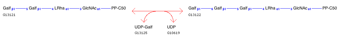 R12080 UDP-alpha-D-galactofuranose + Glycolipid 4 <=> UDP + Glycolipid 5