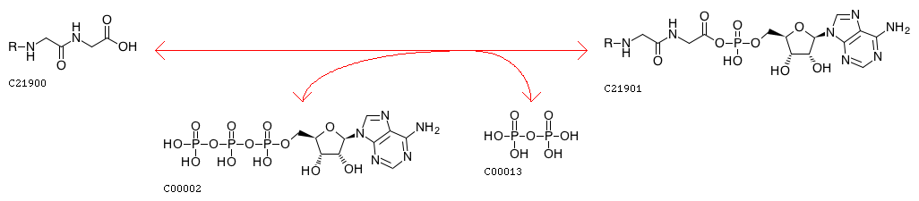 ATP + [SAMP]-Gly-Gly <=> Diphosphate + [SAMP]-Gly-Gly-AMP