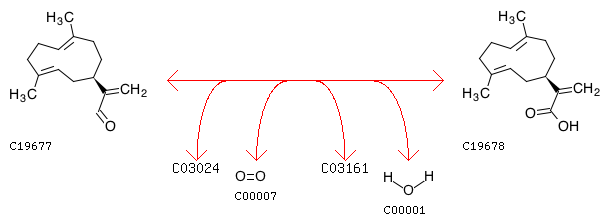 R12130 Germacra-1(10),4,11(13)-trien-12-al + [Reduced NADPH---hemoprotein reductase] + Oxygen <=> Germacrene A acid + [Oxidized NADPH---hemoprotein reductase] + H2O