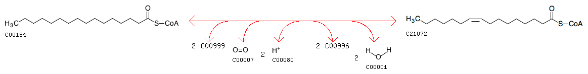 R12173 Palmitoyl-CoA + 2 Ferrocytochrome b5 + Oxygen + 2 H+ <=> Palmitoleoyl-CoA + 2 Ferricytochrome b5 + 2 H2O