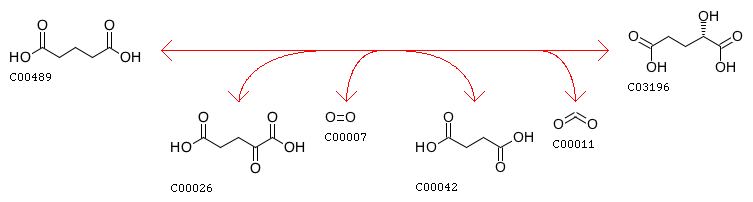 R12216 Glutarate + 2-Oxoglutarate + Oxygen <=> (S)-2-Hydroxyglutarate + Succinate + CO2