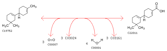 R12226 (S)-beta-Macrocarpene + 3 Oxygen + 3 [Reduced NADPH---hemoprotein reductase] <=> Zealexin A1 + 4 H2O + 3 [Oxidized NADPH---hemoprotein reductase]