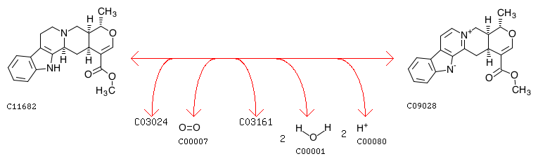 R12282 Tetrahydroalstonine + [Reduced NADPH---hemoprotein reductase] + Oxygen <=> Alstonine + [Oxidized NADPH---hemoprotein reductase] + 2 H2O + 2 H+