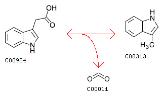 Indole-3-acetate <=> Skatole + CO2