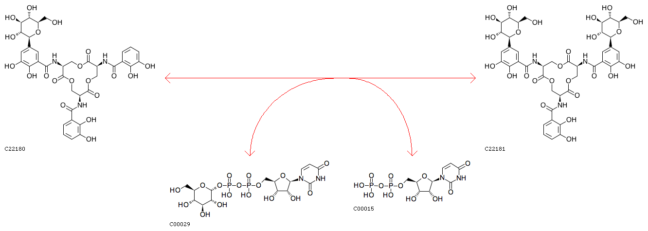 R12470 UDP-glucose + Monoglucosyl-enterobactin <=> UDP + Diglucosyl-enterobactin