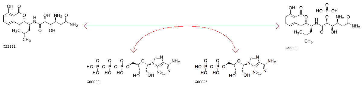 R12530 ATP + Amicoumacin A <=> ADP + Amicoumacin A 2-phosphate