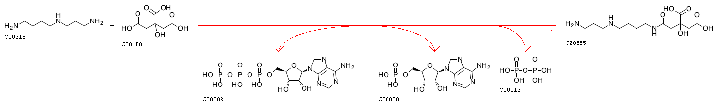 Spermidine + Citrate + ATP <=> N-Citryl-spermidine + AMP + Diphosphate