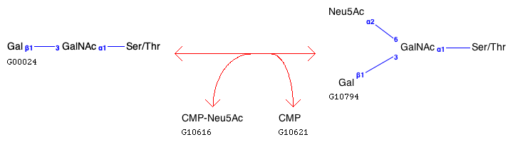 R12704 CMP-N-acetylneuraminate + Thomsen-Friedenreich antigen <=> CMP + G10794