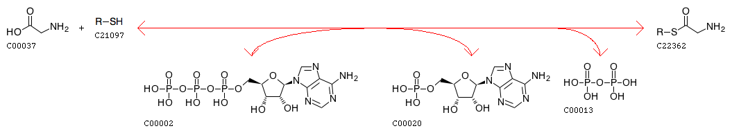 R12723 ATP + Glycine + Peptidyl-carrier protein <=> AMP + Diphosphate + Glycyl-[peptidyl-carrier protein]