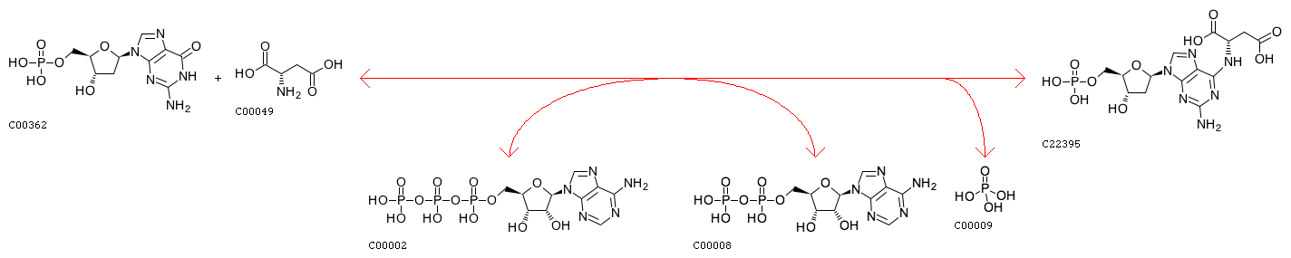 R12786 ATP + dGMP + L-Aspartate <=> ADP + Orthophosphate + N6-Succino-2-amino-2'-deoxyadenylate