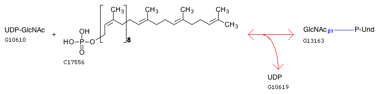 UDP-N-acetyl-D-glucosamine + di-trans,poly-cis-Undecaprenyl phosphate <=> UDP + beta-GlcNAc-P-undecaprenol