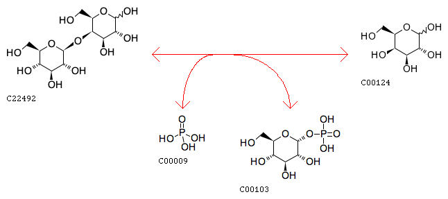 beta-D-Glucosyl-(1->4)-D-galactose + Orthophosphate <=> D-Glucose 1-phosphate + D-Galactose
