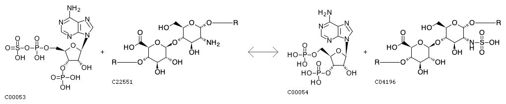 R13047 3'-Phosphoadenylyl sulfate + Heparosan D-glucuronate <=> Adenosine 3',5'-bisphosphate + Heparosan-N-sulfate D-glucuronate