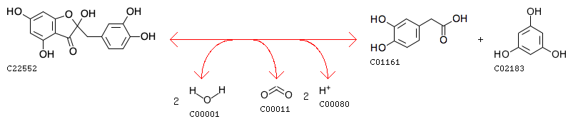 Alphitonin + 2 H2O <=> 3,4-Dihydroxyphenylacetate + Phloroglucinol + CO2 + 2 H+