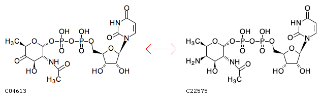 UDP-2-acetamido-4-dehydro-2,6-dideoxyglucose <=> UDP-2-acetamido-4-amino-2,4,6-trideoxy-D-galactose