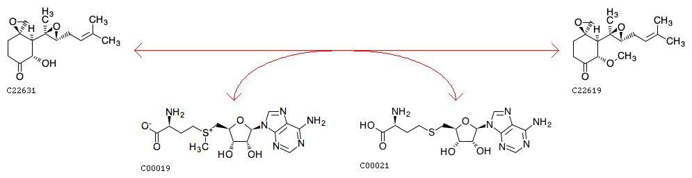 R13123 S-Adenosyl-L-methionine + 5-Dehydro-6-demethoxy-6-hydroxyfumagillol <=> S-Adenosyl-L-homocysteine + 5-Dehydrofumagillol