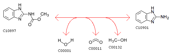 Carbendazim + H2O <=> 2-Aminobenzimidazole + CO2 + Methanol
