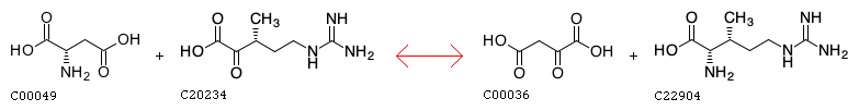 L-Aspartate + (3R)-5-Guanidino-3-methyl-2-oxopentanoate <=> Oxaloacetate + (3R)-3-Methyl-L-arginine