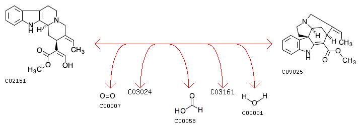 R13381 (19E)-Geissoschizine + Oxygen + [Reduced NADPH---hemoprotein reductase] <=> Akuammicine + Formate + [Oxidized NADPH---hemoprotein reductase] + H2O