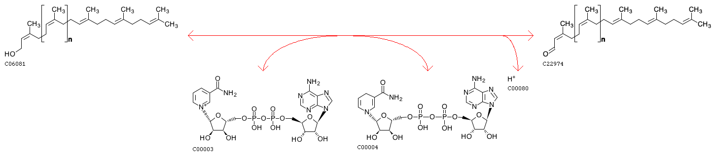 R13402 Polyprenol + NAD+ <=> ditrans,polycis-Polyprenal + NADH + H+