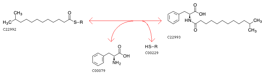 R13432 11-Methyldodecanoyl-[acp] + L-Phenylalanine <=> Acyl-carrier protein + N-(11-Methyldodecanoyl)-L-phenylalanine