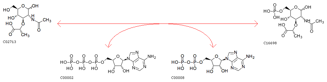 ATP + N-Acetylmuramate <=> ADP + N-Acetylmuramic acid 6-phosphate