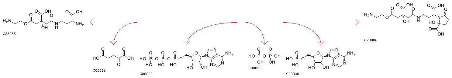 Diaminobutyryl-citryl-ethanolamine + 2-Oxoglutarate + ATP <=> alpha-Ketoglutaryl-diaminobutyryl-citryl-ethanolamine + Diphosphate + AMP