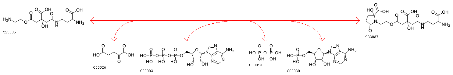 Diaminobutyryl-citryl-ethanolamine + 2-Oxoglutarate + ATP <=> Diaminobutyryl-citryl-ethanolamino-alpha-ketoglutarate + Diphosphate + AMP
