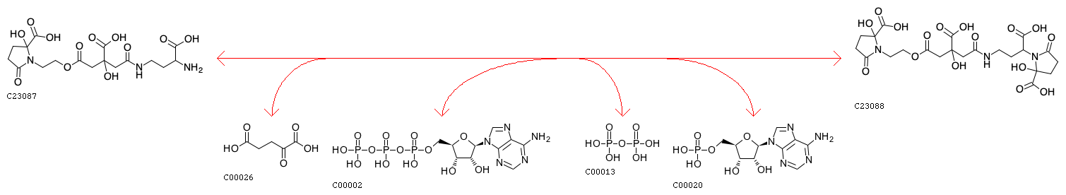 Diaminobutyryl-citryl-ethanolamino-alpha-ketoglutarate + 2-Oxoglutarate + ATP <=> Achromobactin + Diphosphate + AMP