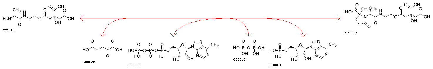 Alanyl-O-citryl-aminoehanol + 2-Oxoglutarate + ATP <=> Vibrioferrin + Diphosphate + AMP
